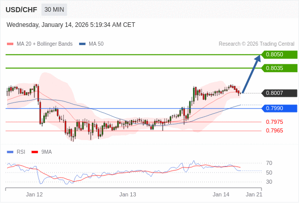 在 0.7990 之上,看涨,目标价位为 0.8035 ,然后为 0.8050 。