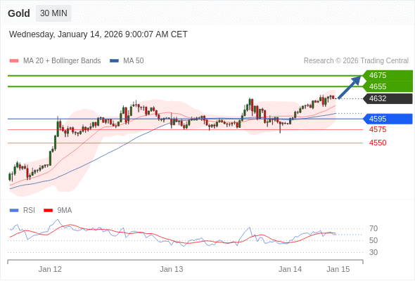 在 4595 之上,看涨,目标价位为 4655 ,然后为 4675 。
