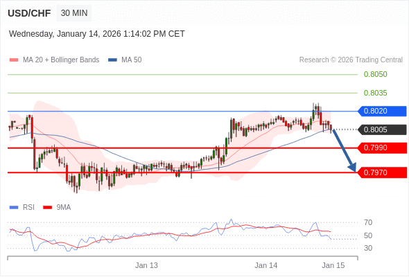 在 0.8020 之下,看跌,目标价位为 0.7990 ,然后为 0.7970 。