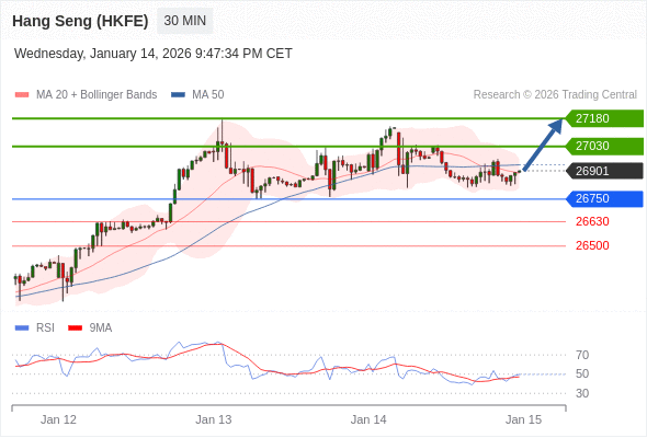 在 26750 之上,看涨,目标价位为 27030 ,然后为 27180 。