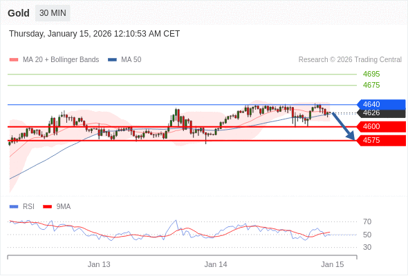 在 4640 之下,看跌,目标价位为 4600 ,然后为 4575 。