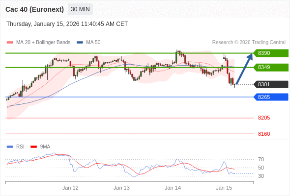 交易策略: 在 8265 之上,看涨,目标价位为 8349 ,然后为 8390 。