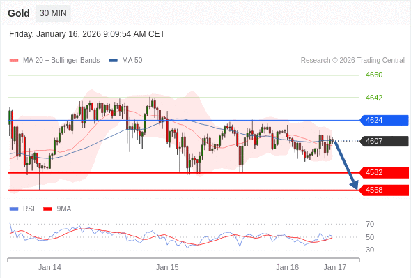 在 4624 之下,看跌,目标价位为 4582 ,然后为 4568 。