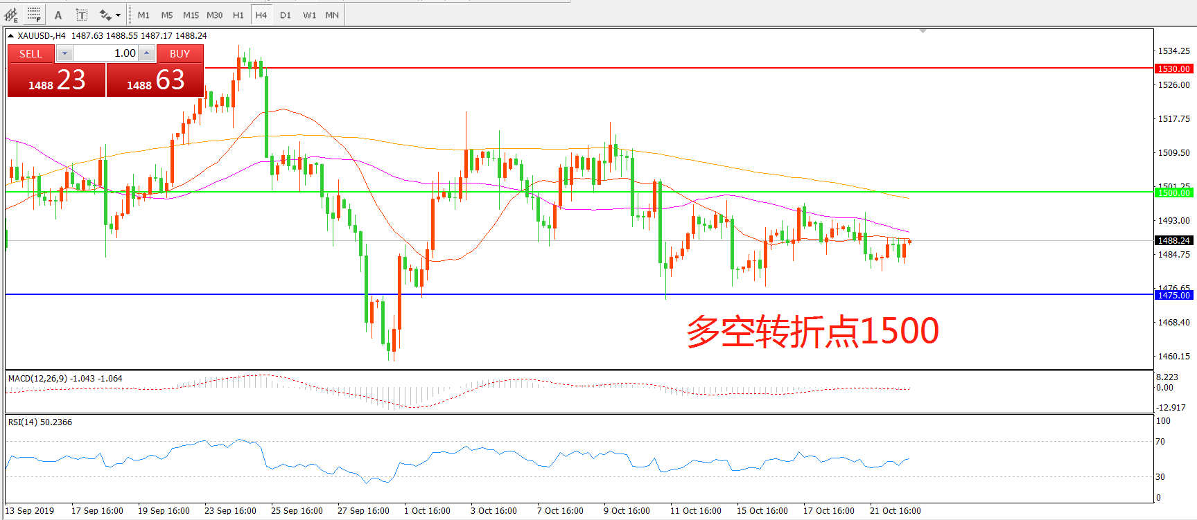 交易策略:在1500.00之下看跌,目标1475.00 1450.00