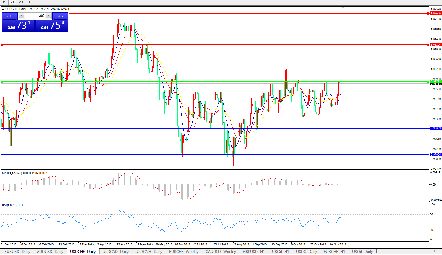 美元兑瑞郎USDCHF    日线