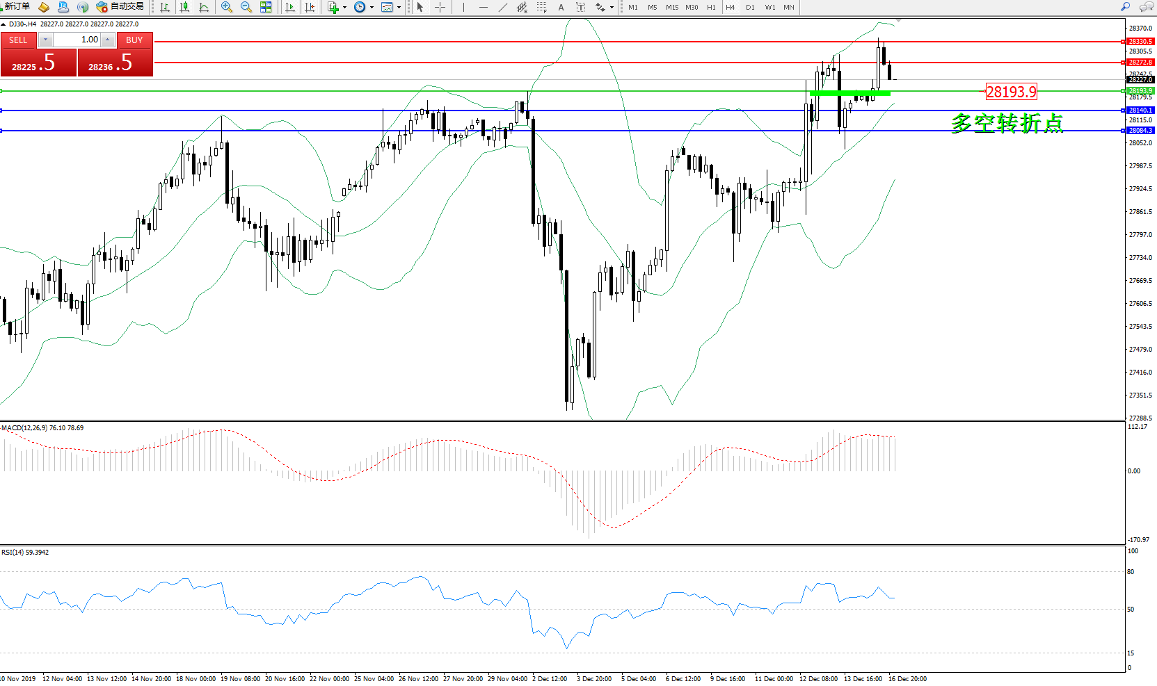 道琼斯指数12月16日(周一)收盘上涨100.40点,涨幅0.36%,报28235.82点。因市场预计美中达成的第一阶段贸易在年底前夕将缓解投资者面临的一个重要风险。,美国制造业和服务业数据显示经济强劲,也提振了市场信心。虽然在过去20个月贸易争端中加征的关税很多维持不变,但初步协议标志着中美关系的解冻。