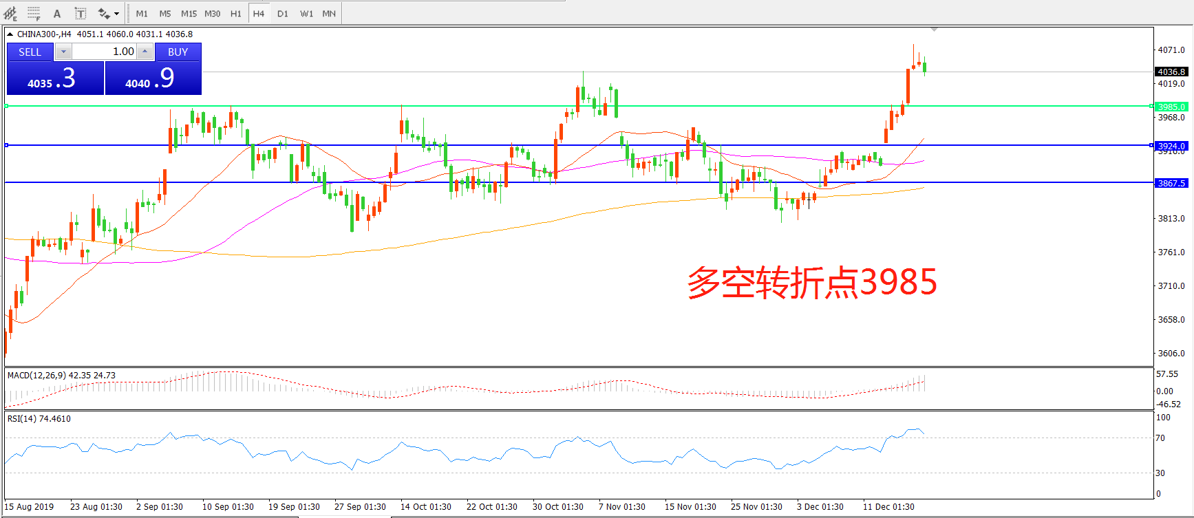 多空转折点:3985.00