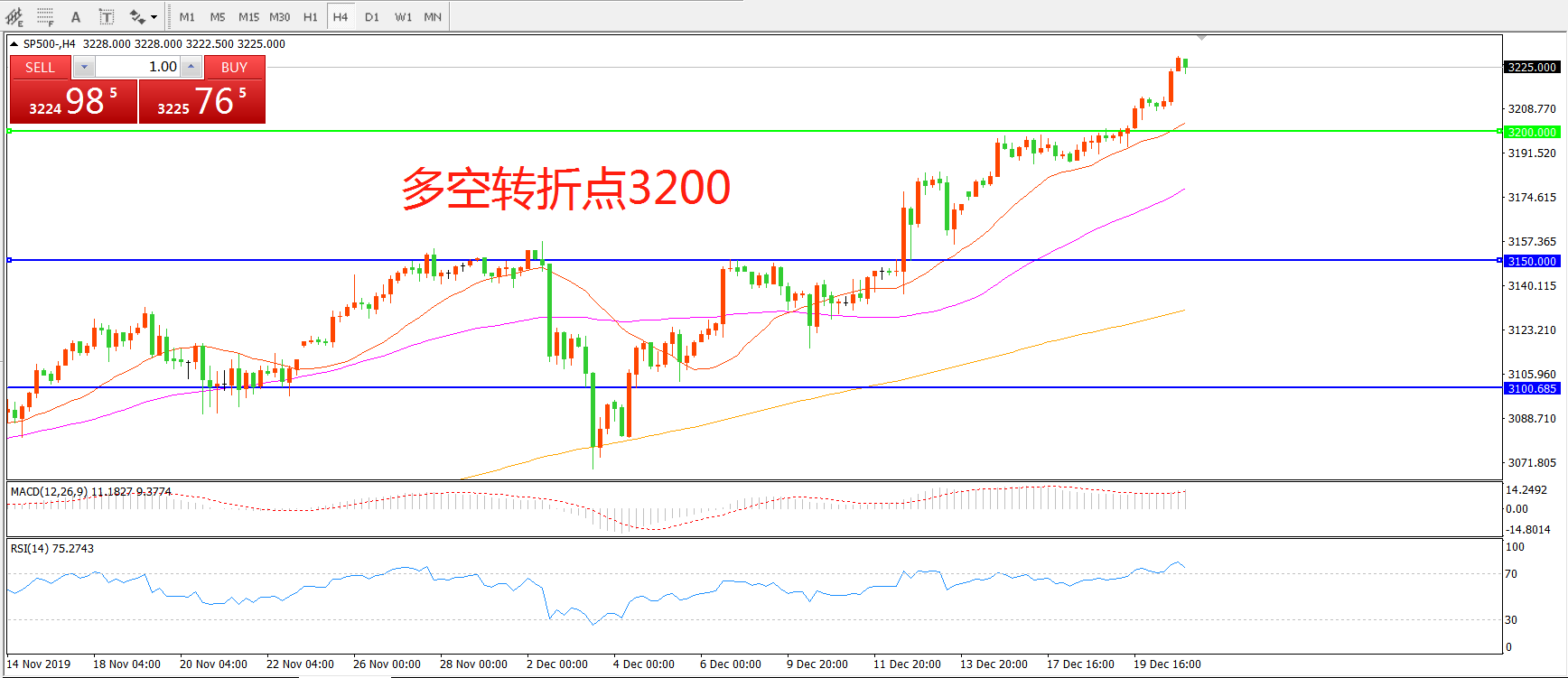 多空转折点:3200.00