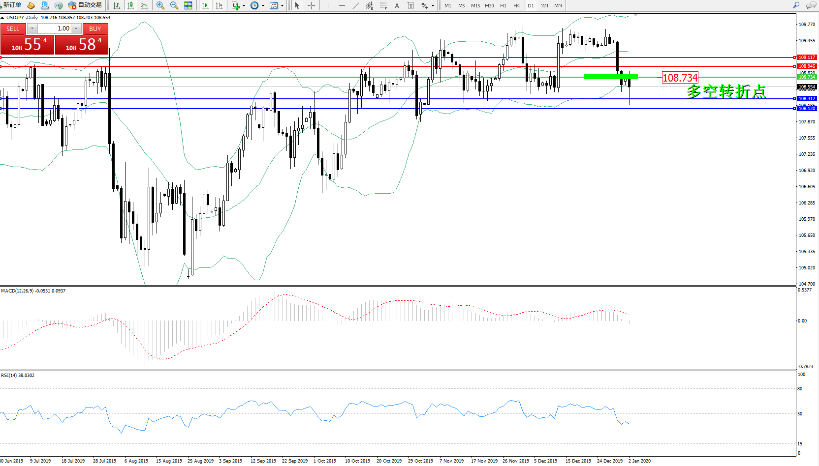 美元兑日元跌0.17%108.57;最大下跌0.5%108.21,原因是美国国债收益率下降触发了止损卖盘,周四公布的数据和美元上涨打破了去年12月的趋势,当时中美贸易紧张局势缓解和全球经济增长前景改善,导致美元下跌。在中东紧张局势加剧以及市场担心人们对英国脱欧的乐观情绪掩盖了道路可能崎岖的事实。令全球风险偏好情绪悄然发生变化。