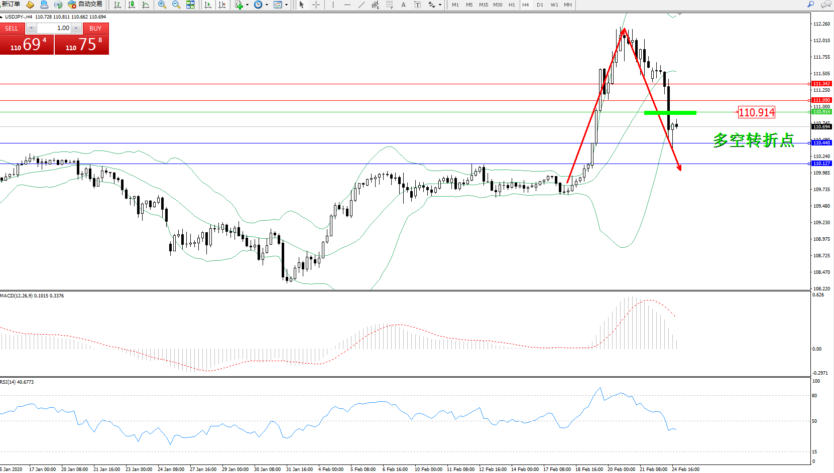 交易策略:110.914下方看跌,目标110.440110.127