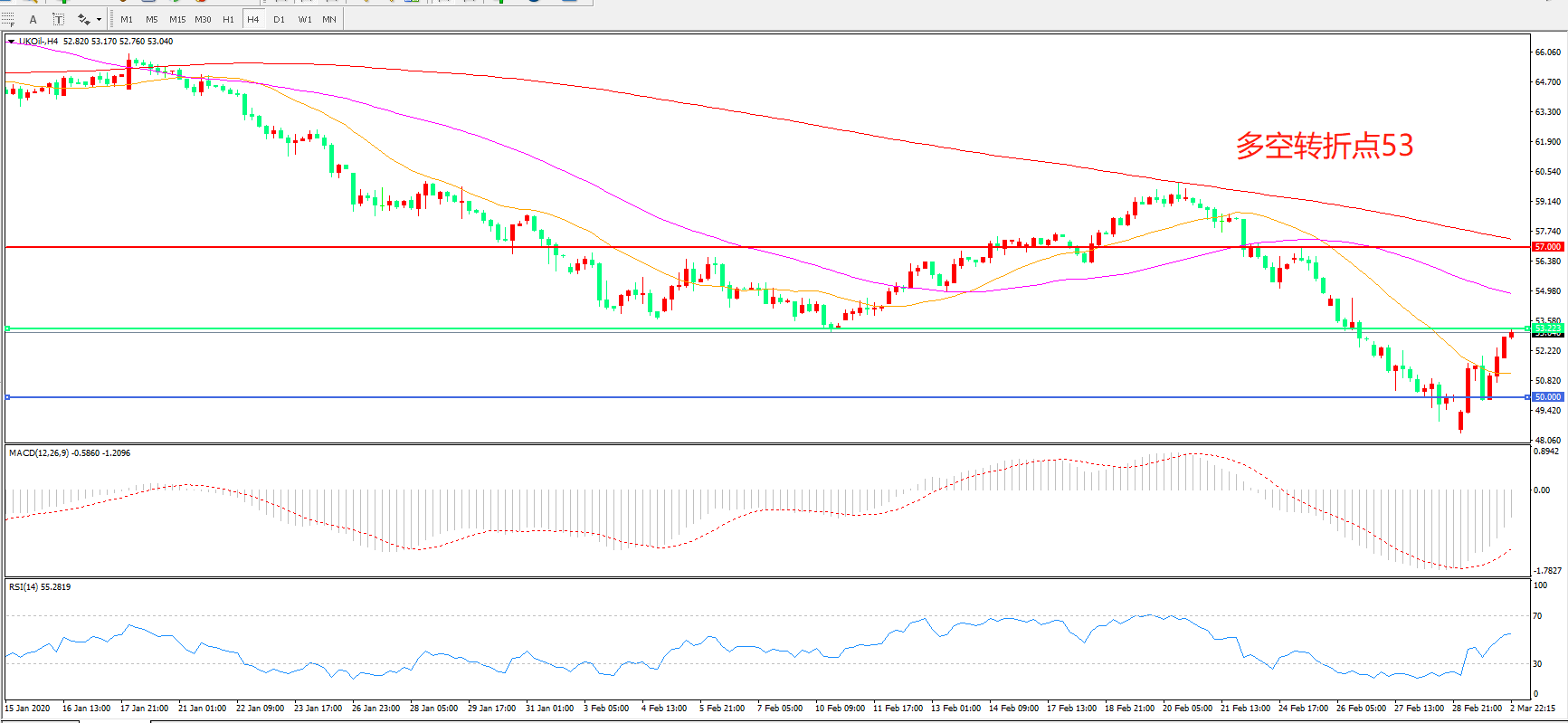 交易策略:在53.00之上看涨,目标57.00    60.00