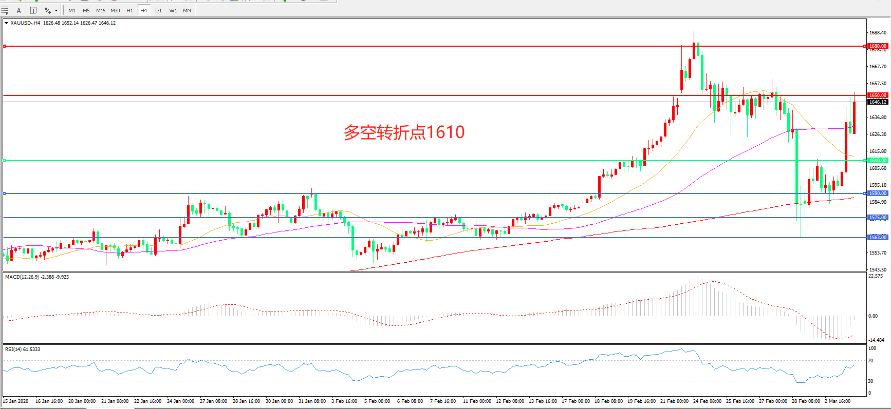 交易策略:在1610.00之上看涨,目标1650.00   1680.00