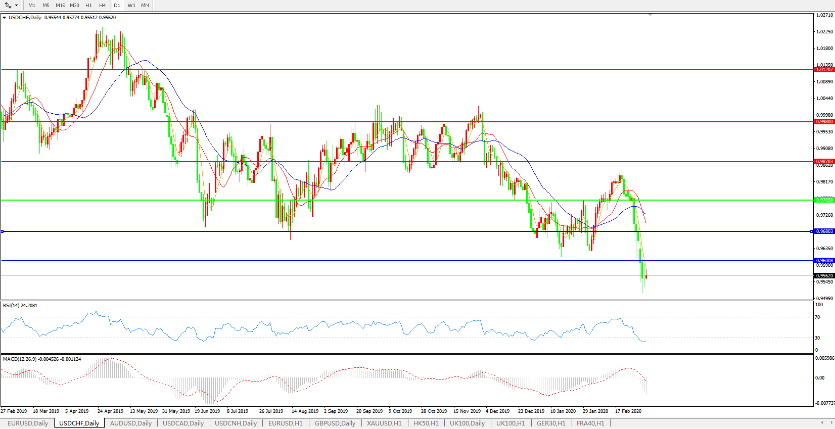 支撑位:0.9600      0.9500