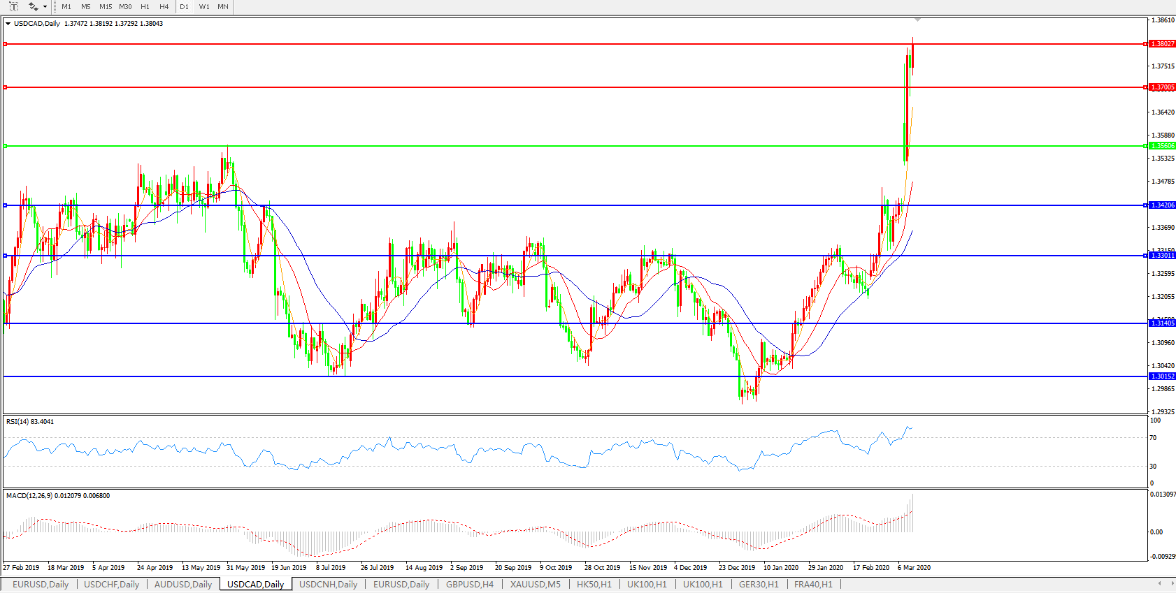 美元兑加元USDCAD 日线图: