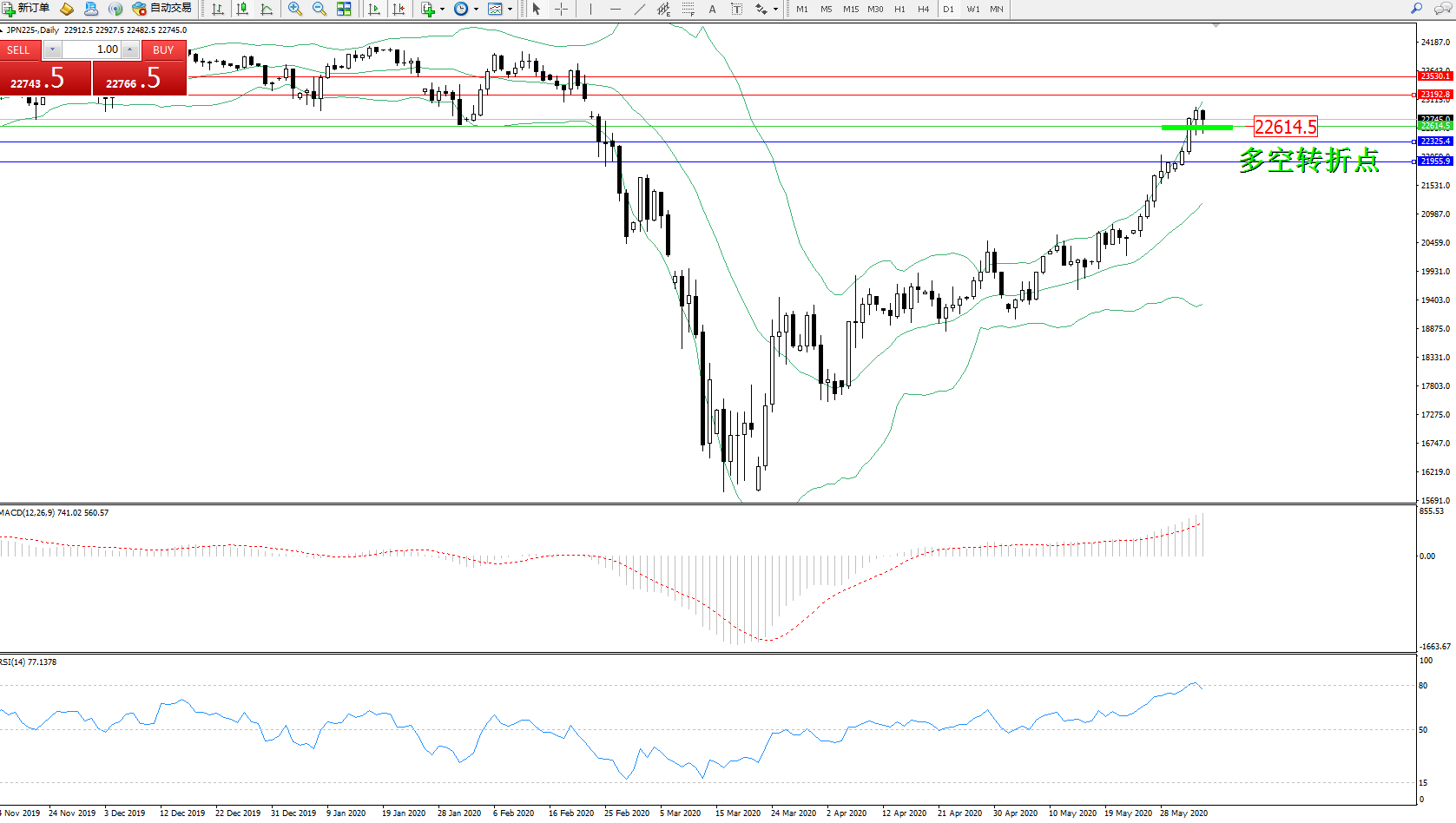 日经225指数64日(周四)收盘上涨54.74点,涨幅0.24%,报22668.50点。全球风险情绪进一步升温,欧美股市依旧走高,而投资者对美国国内骚乱事件的影响持看淡态度,并着重解读了ADP就业报告所显示的新增失业人口意外少于预期的向好因素,从而对美国经济重启前景更有信心。日本环球影城(USJ8日将限定入场者恢复营业,4日先向媒体相关人士公开了预防感染新型冠状病毒的措施。除了规定入场者有义务测体温并戴口罩外,对游乐和室内设施实施消毒。