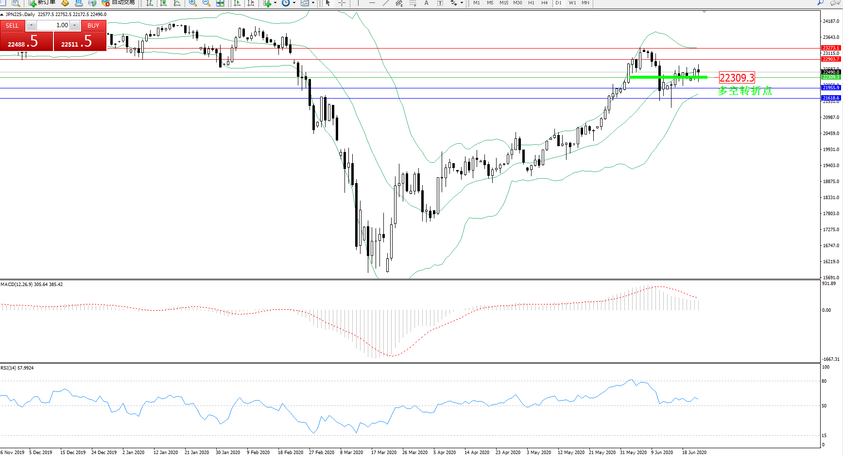日经225指数623日(周二)收盘上涨99.73点,涨幅0.44%,报22537.00点。全球市场情绪在短暂受到贸易前景风波冲击后,重新返回原有轨道,亚洲股市整体走高,投资者仍更倾向于押注全球经济在社会公众活动重启后快速复苏,并淡化了面对疫情“第二波”的顾虑,因此避险货币首当其冲地继续遭到抛售。日本首相安倍晋三领导的执政党自民党希望将东京打造成一个欢迎外国专业人士的全球金融中心。自民党的政策研究委员会在文件中称,鉴于亚洲当前的地缘政治局势,日本应充分借助自身的民主和法规等优势,来打造一个国际金融中心。文件称,公共和私营领域应合作以吸引外国专业人士,并通过学校和医疗等服务建立支持体系。