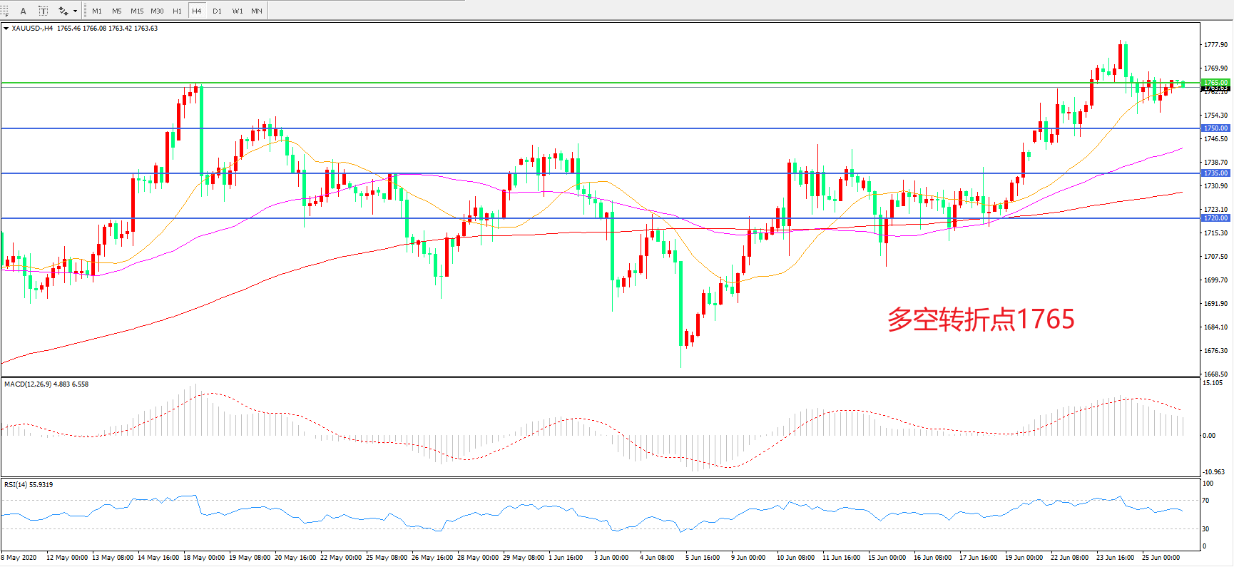 多空转折点:1765.00