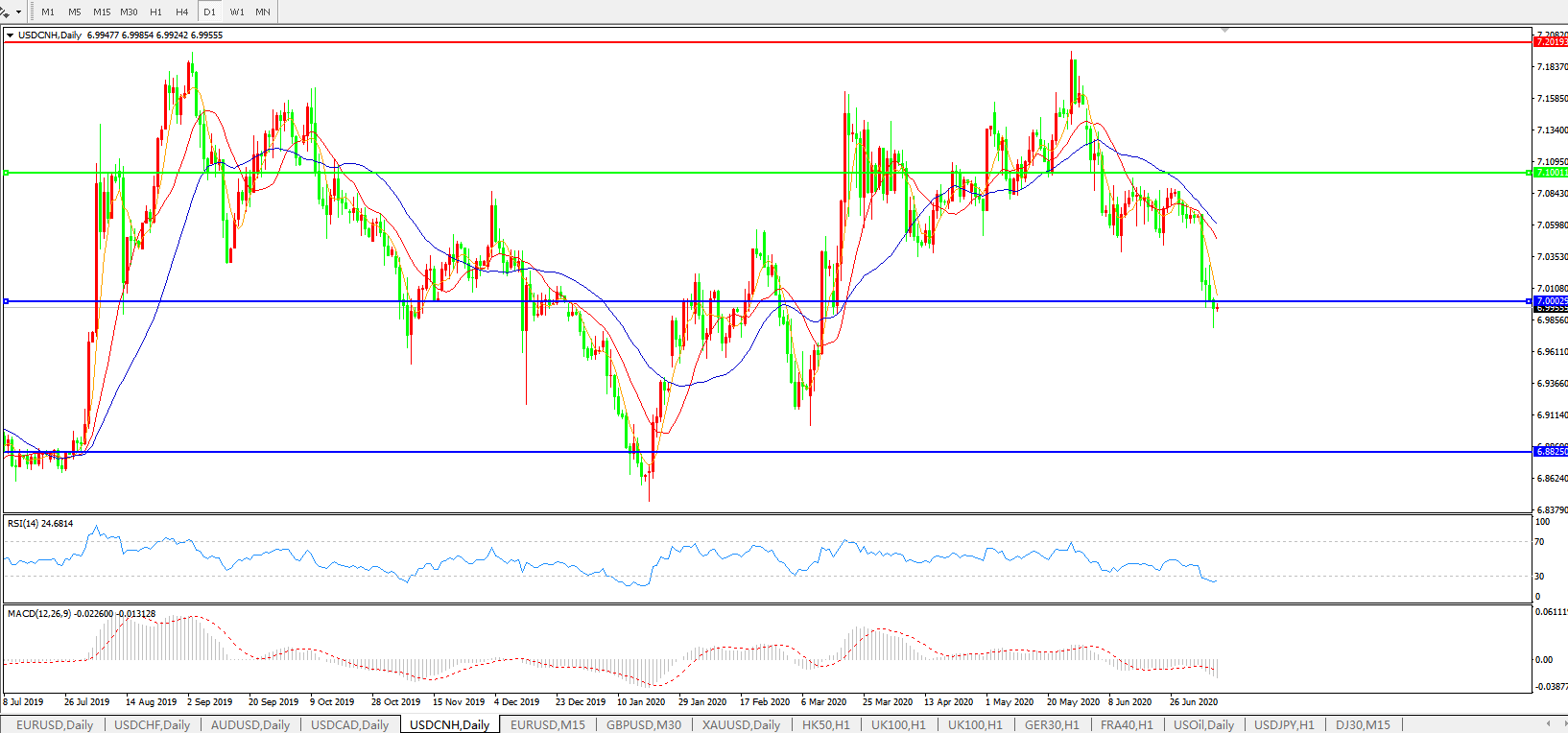 备选策略: 在7.1000之上,看涨,目标价位为7.2000,然后为7.3000。