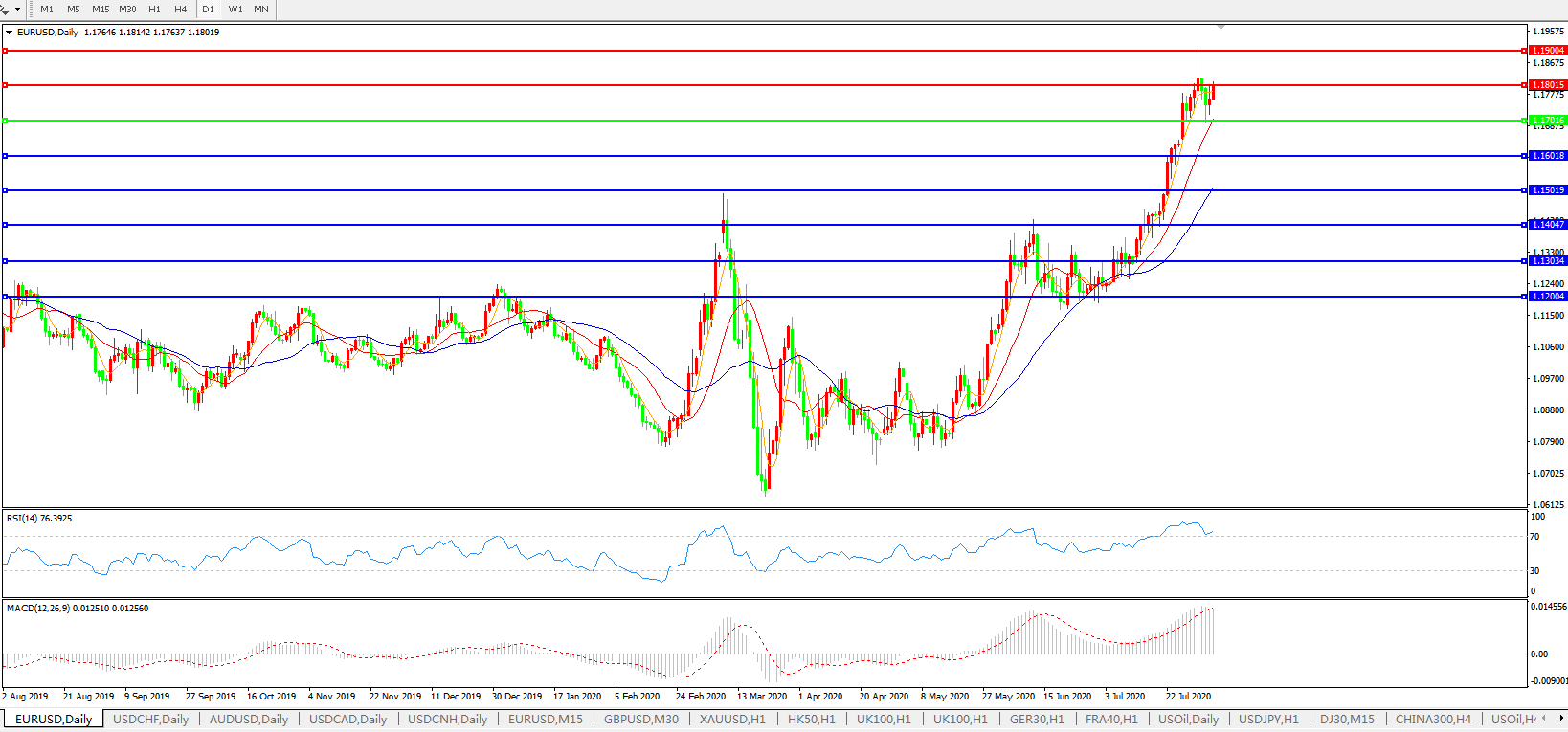 欧元兑美元EURUSD   日线图: