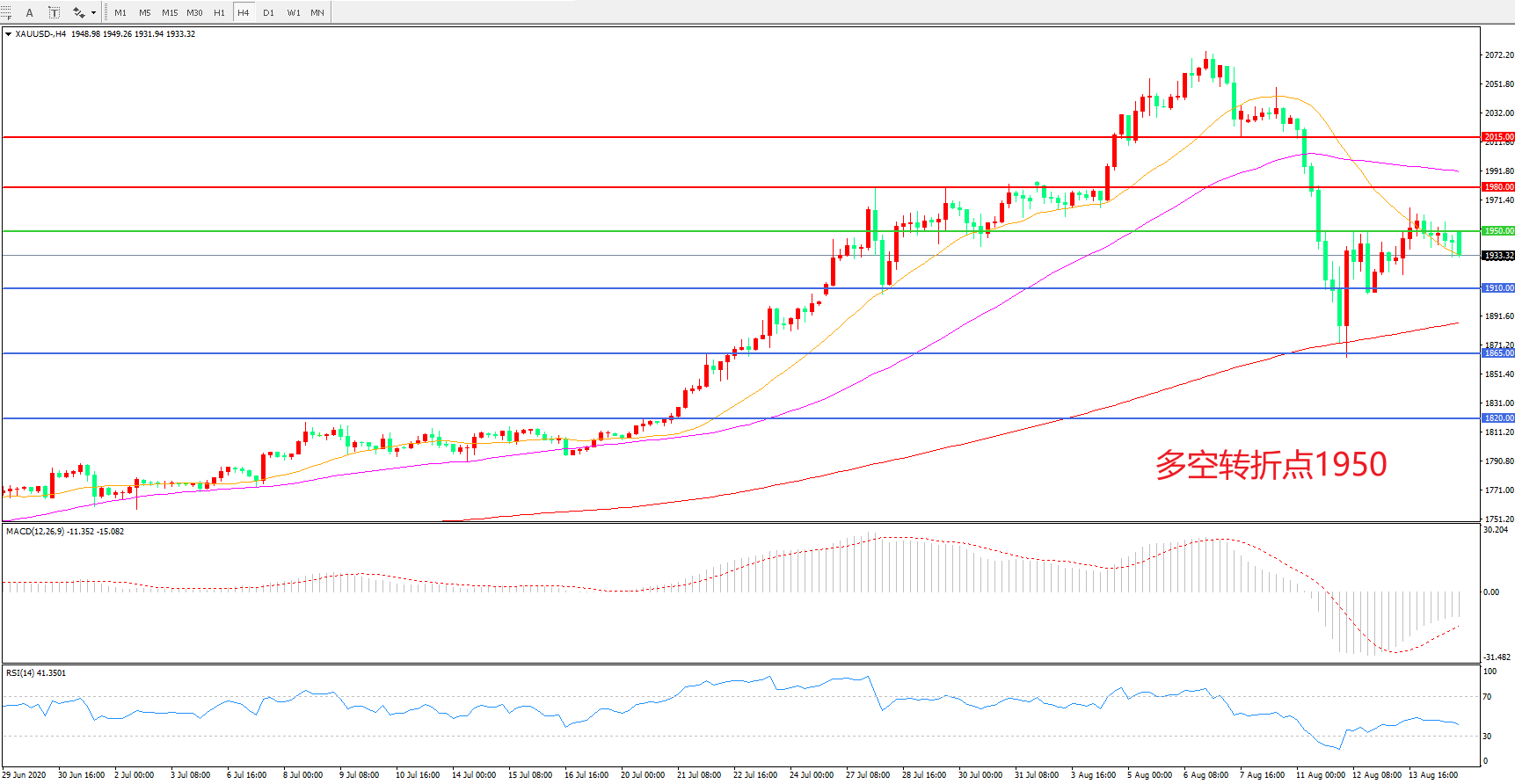 现货黄金XAU/USD    4小时图