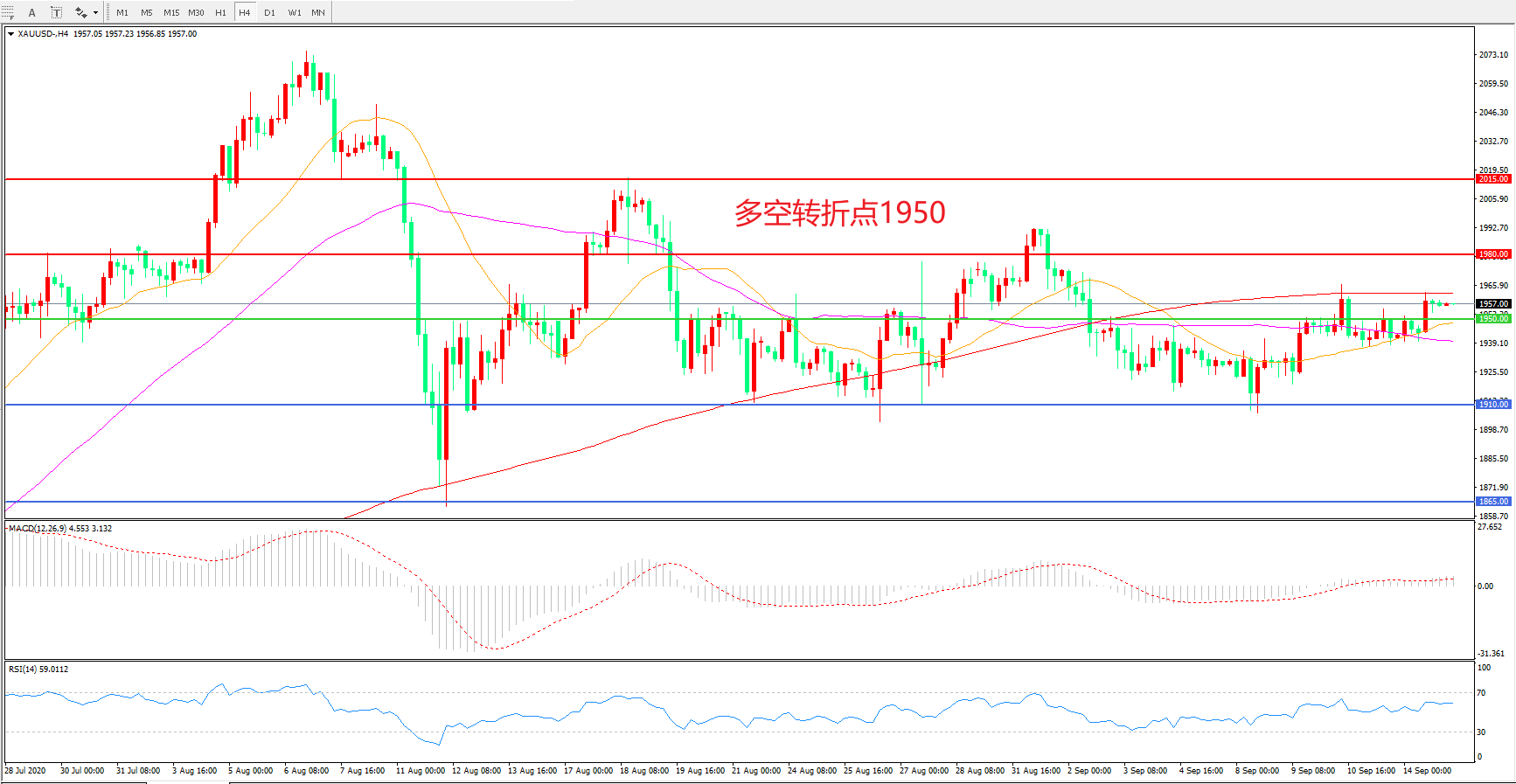 多空转折点:1950.00