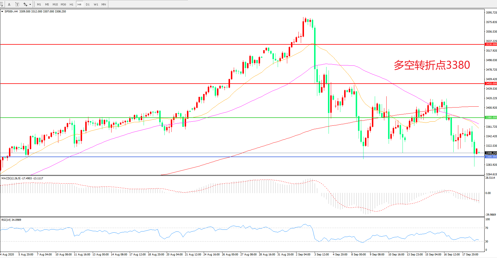 多空转折点:3380.00