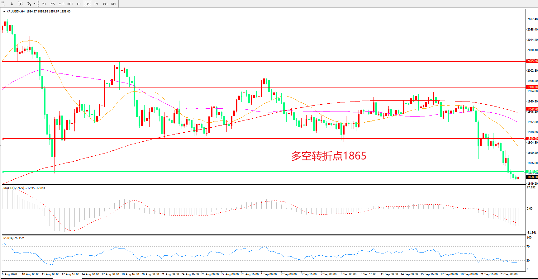 交易策略:在1865.00之下看跌,目标1835.00 1800.00