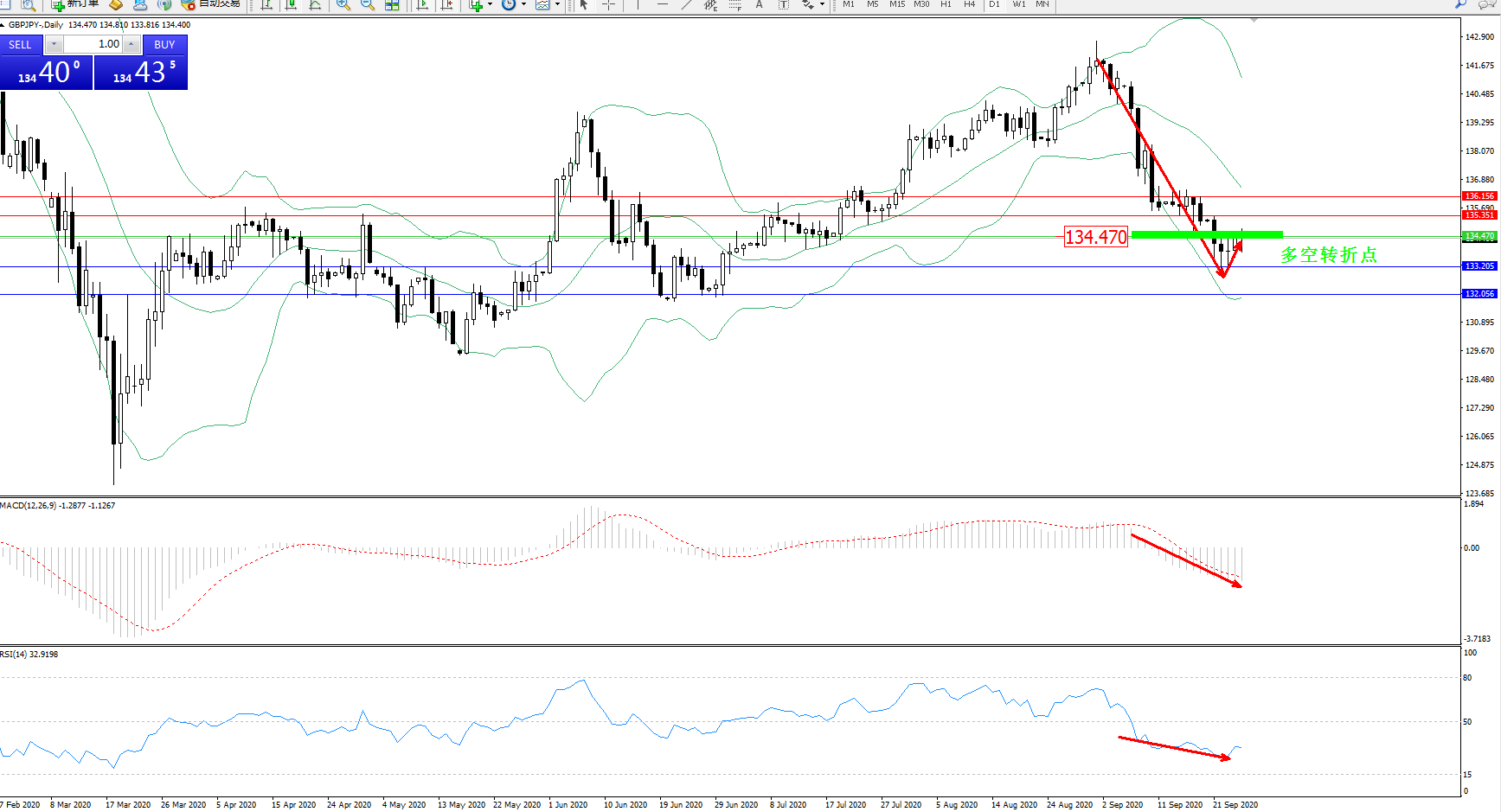 多空转折点:134.470