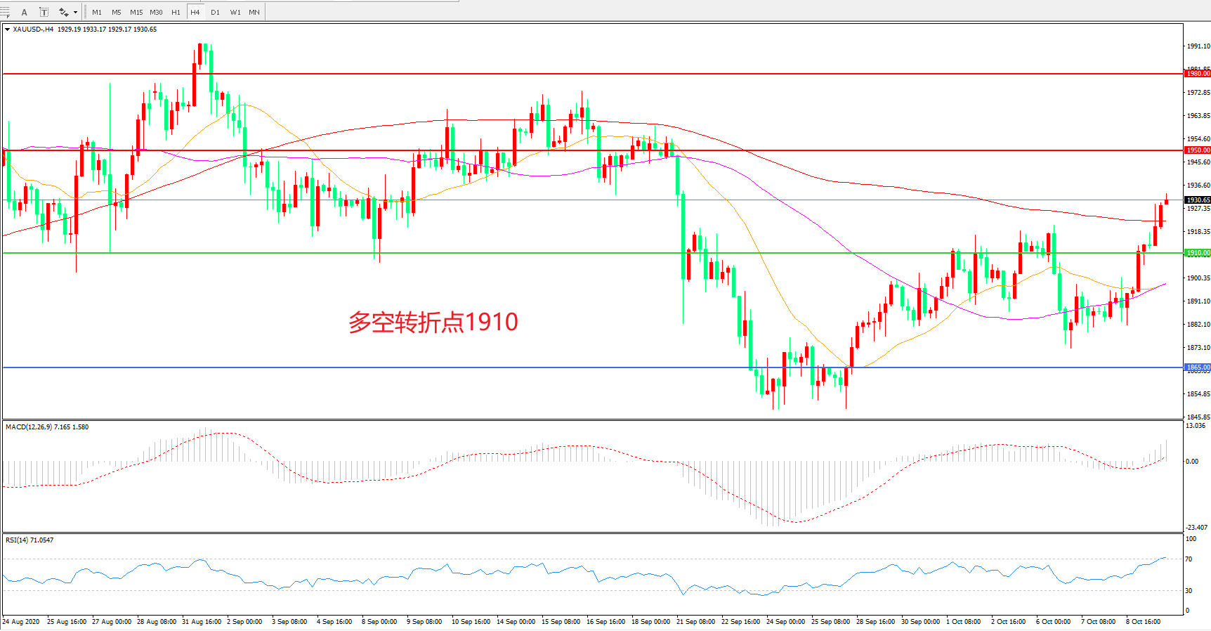 多空转折点:1910.00