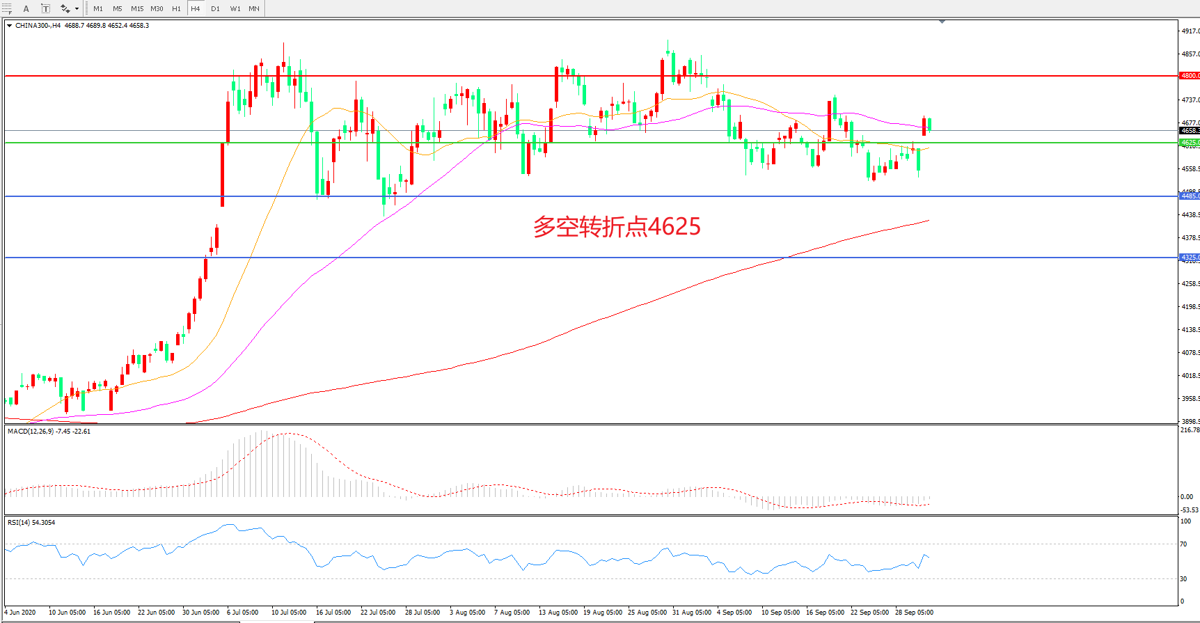 多空转折点:4625.00