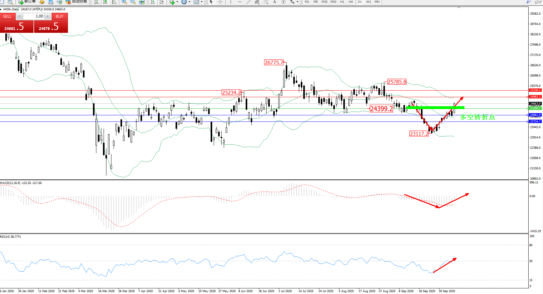 恒指HK50 ——日K线图显示: