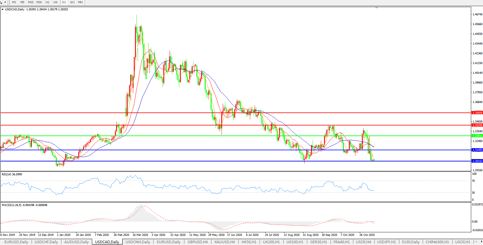 美元兑加元USDCAD 日线图: