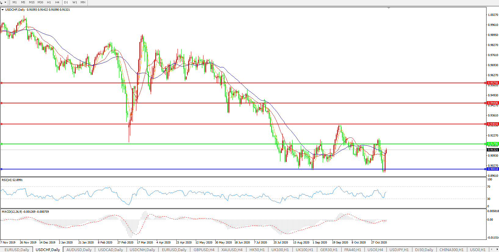 美元兑瑞郎USDCHF    日线图: