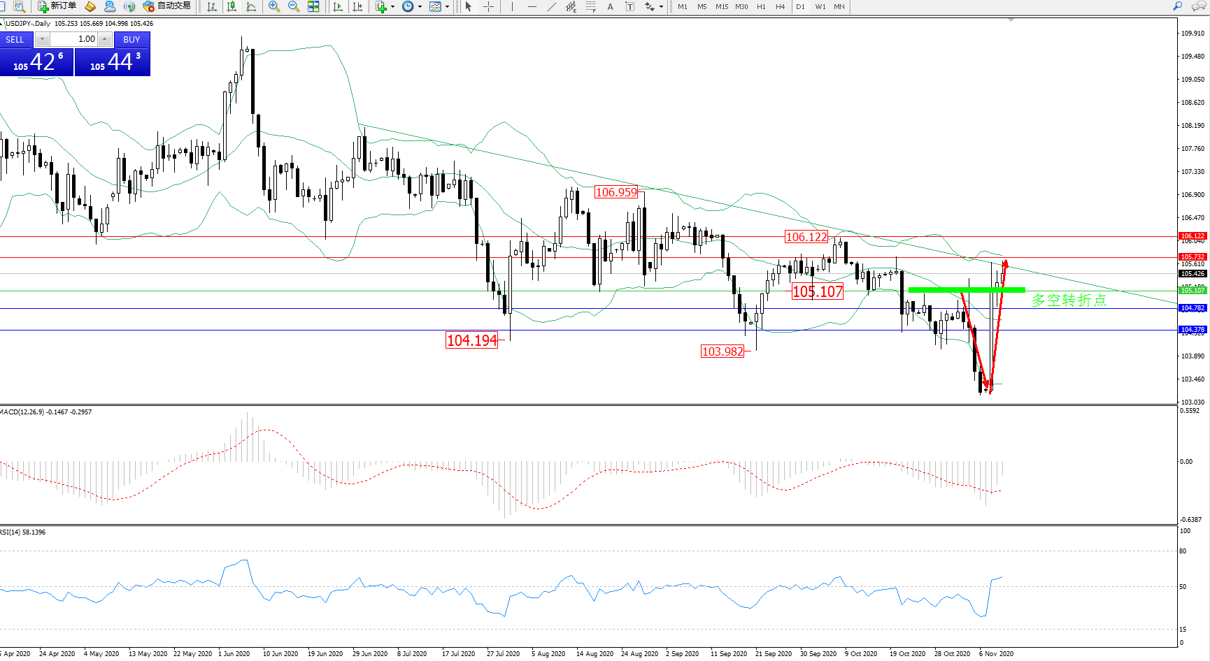 多空转折点:105.107