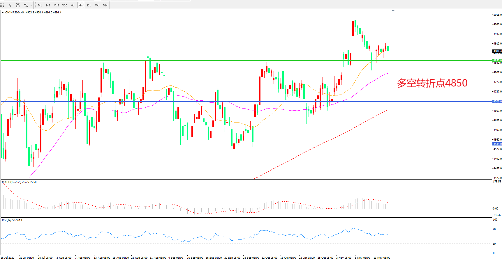 多空转折点:4850.00