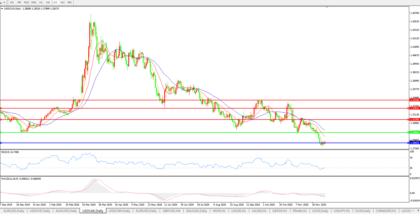 美元兑加元USDCAD 日线图: