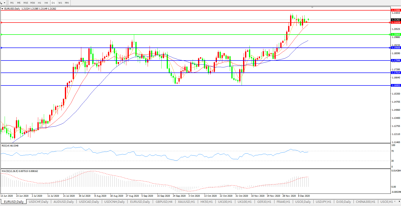 欧元兑美元EURUSD 日线图: