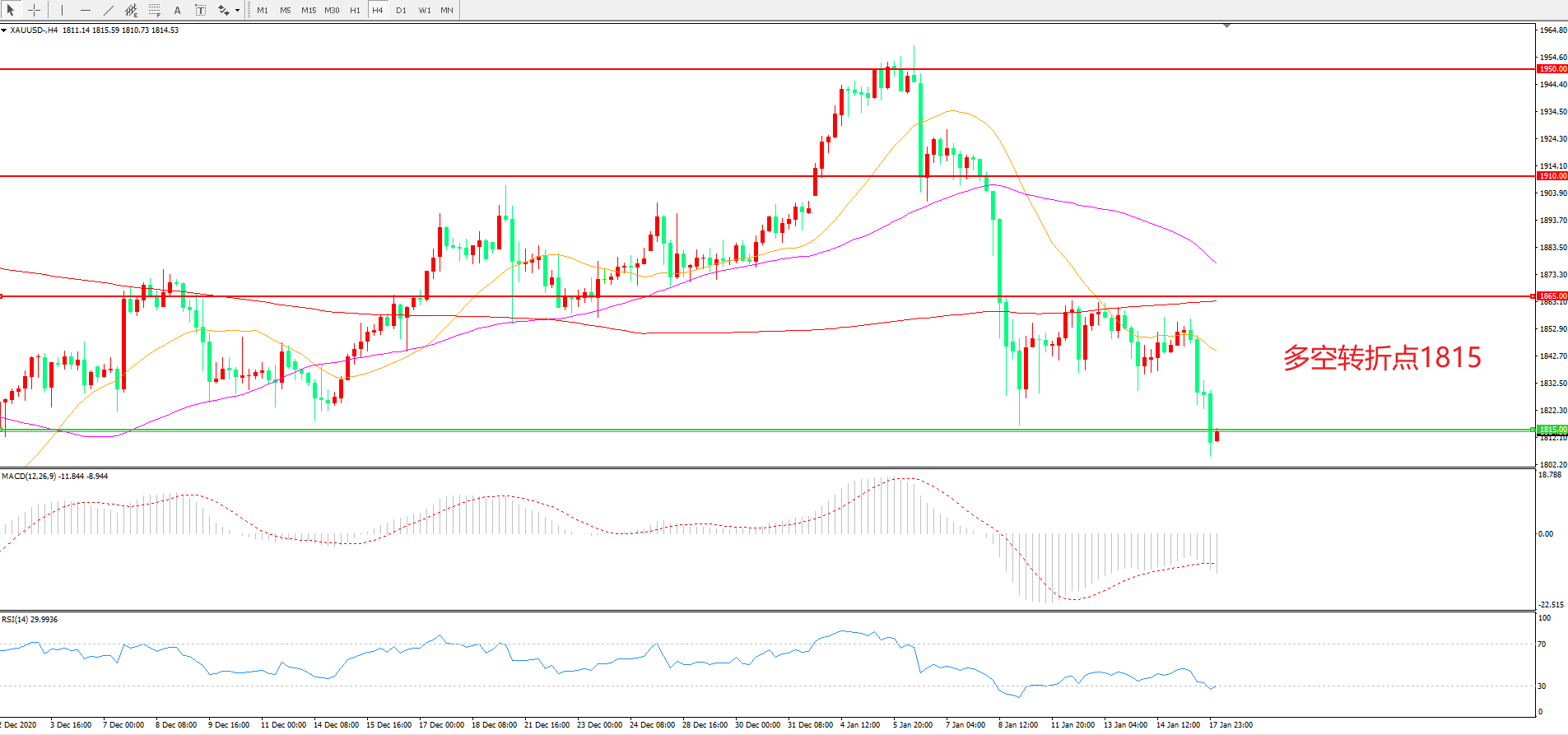 多空转折点:1815.00