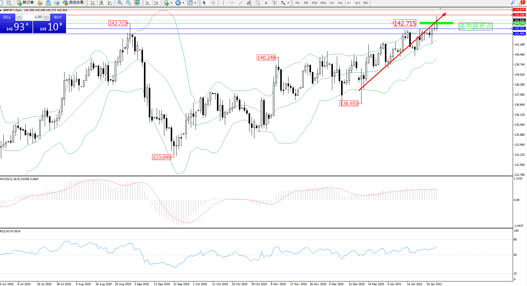 交易策略:142.715上方看涨,目标143.306、143.679