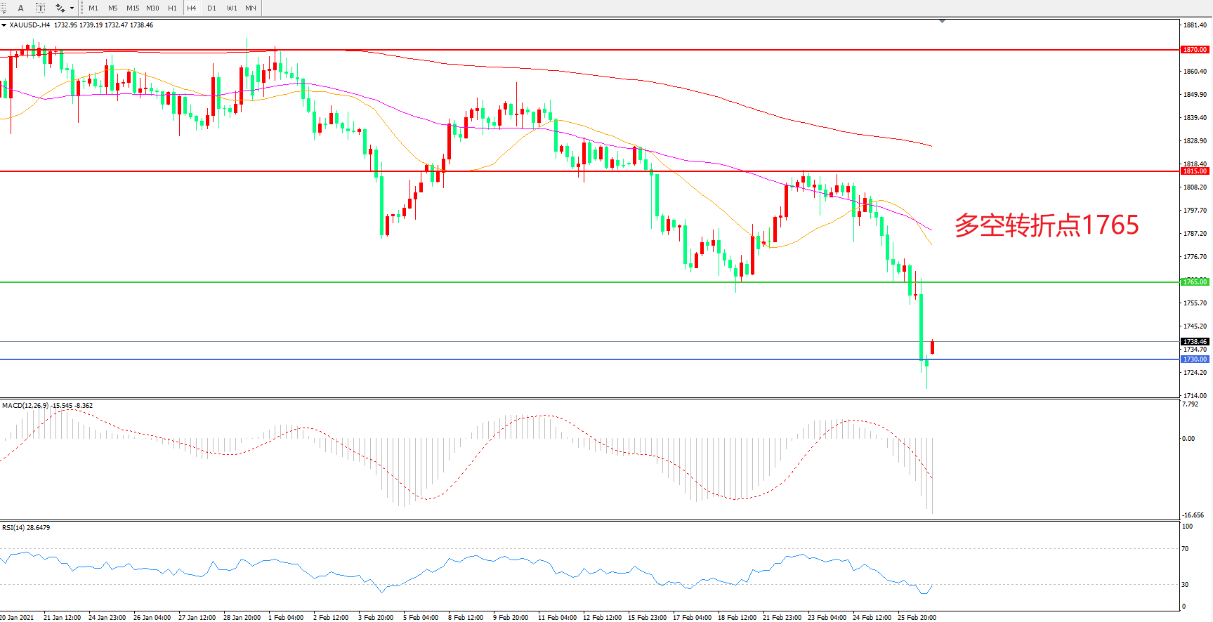 交易策略:在1765.00之下看跌,目标1730.00 1700.00