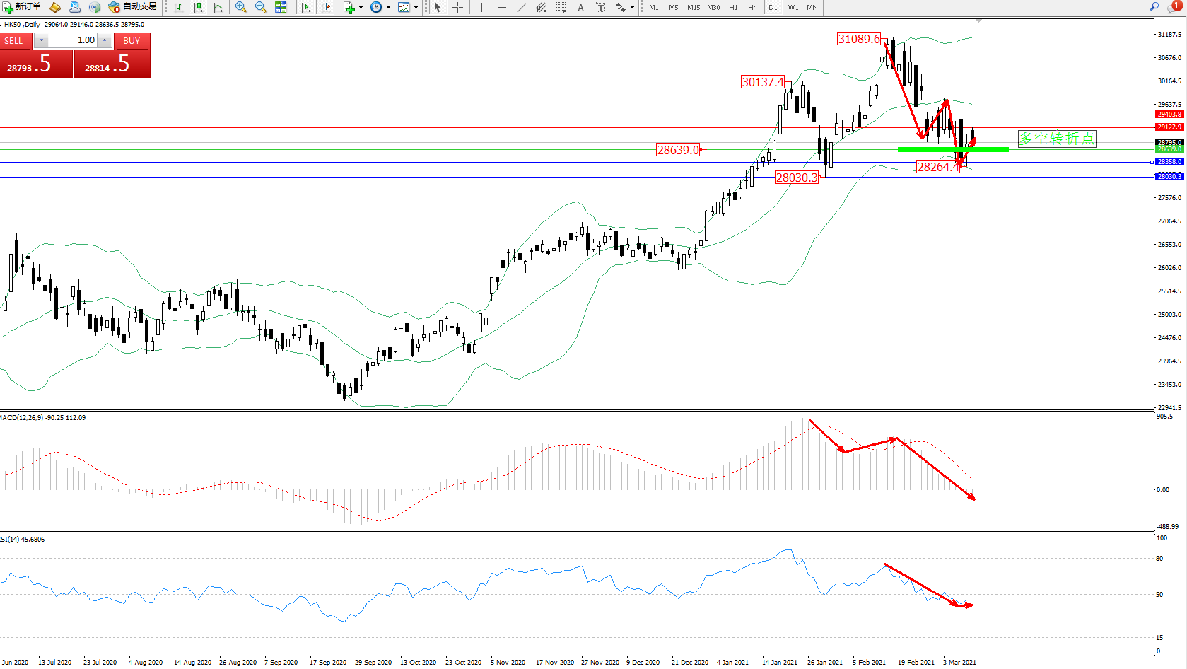 恒指HK50 ——日K线图显示: