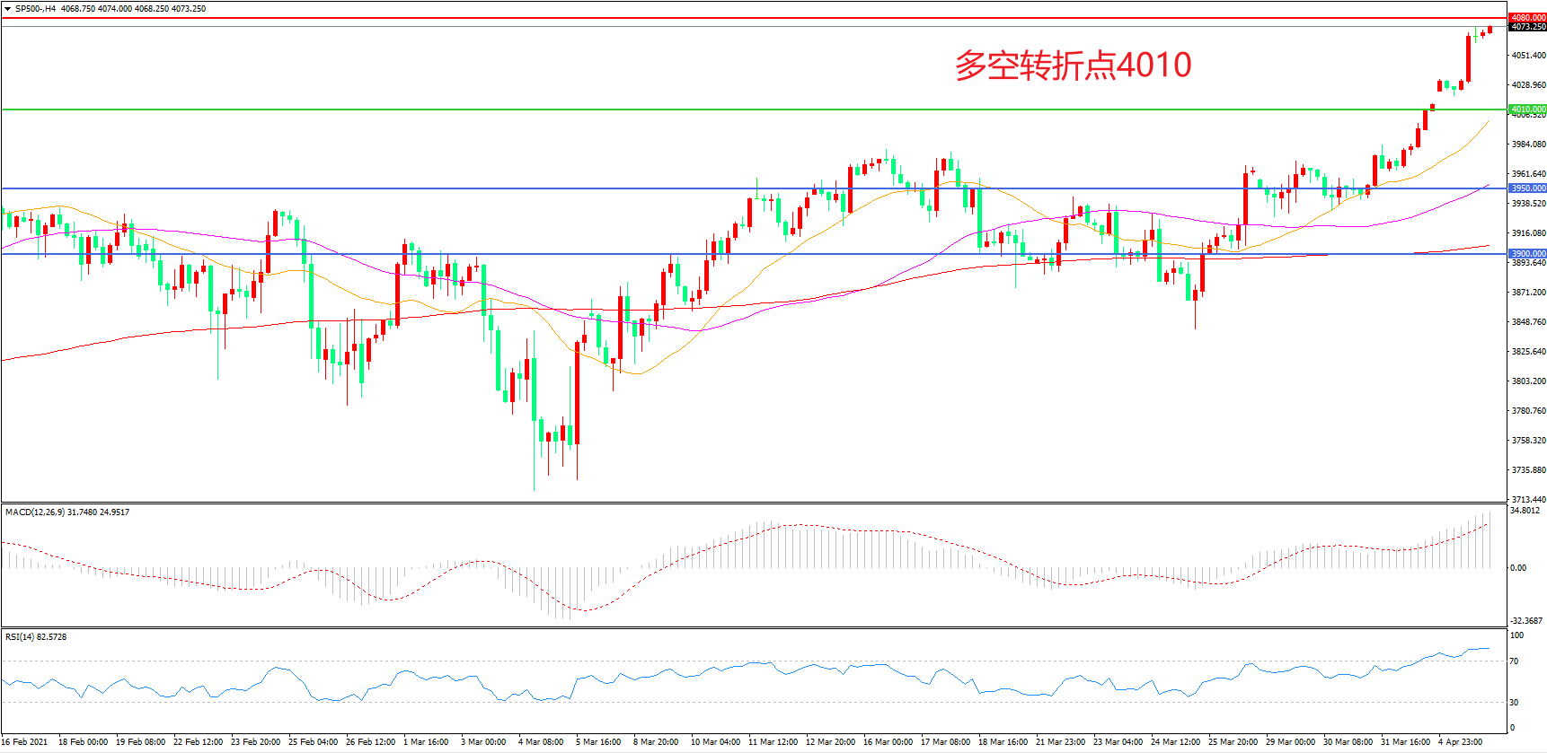 多空转折点:4010.00