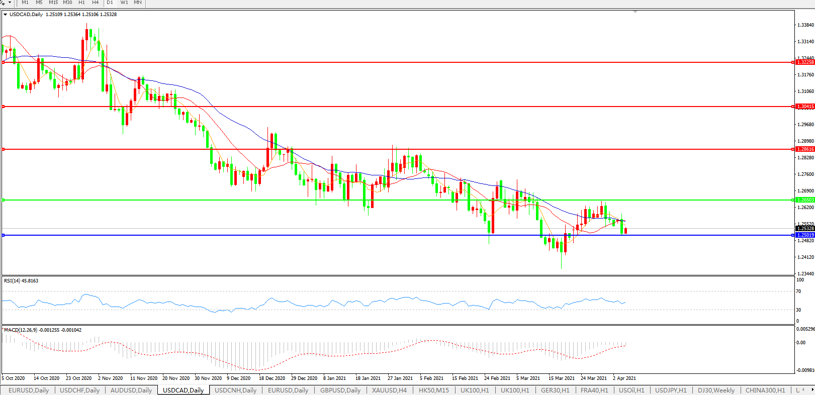 美元兑加元USDCAD    日线图: