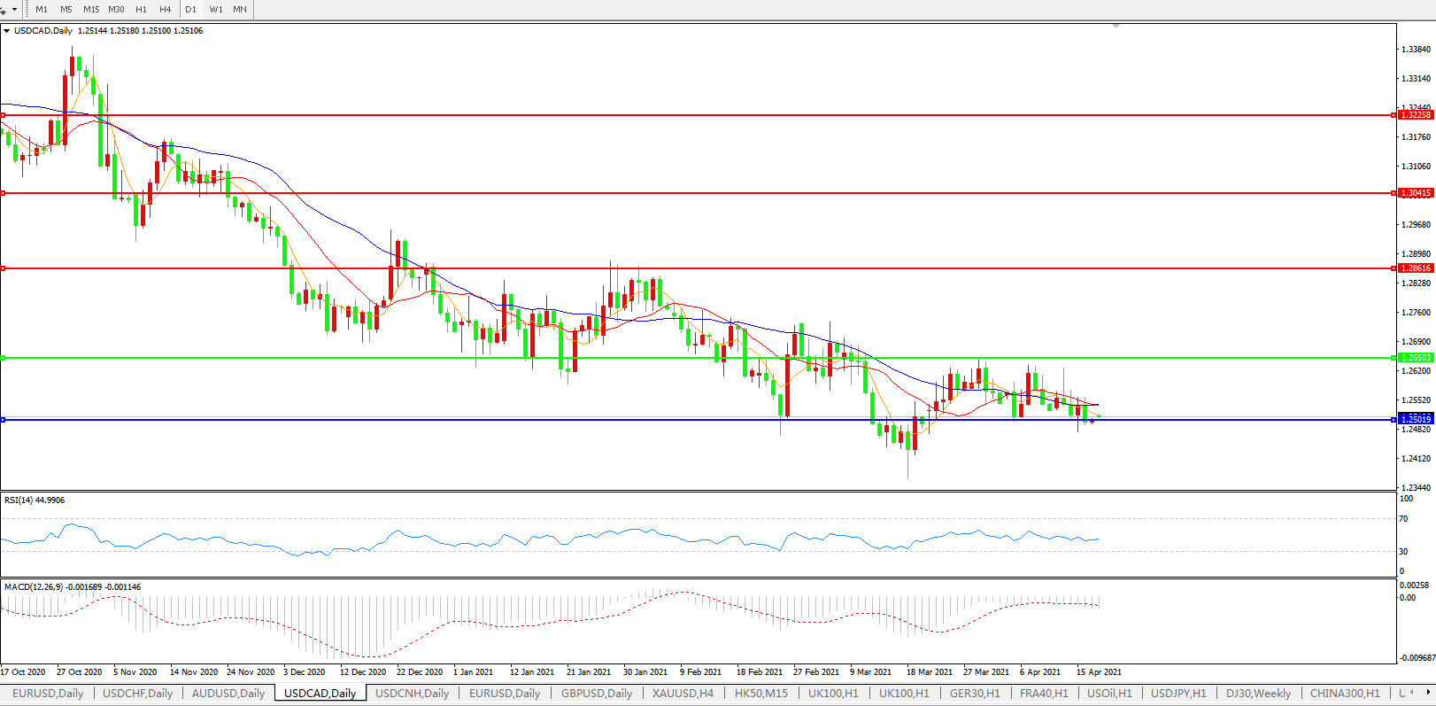 美元兑加元USDCAD 日线图: