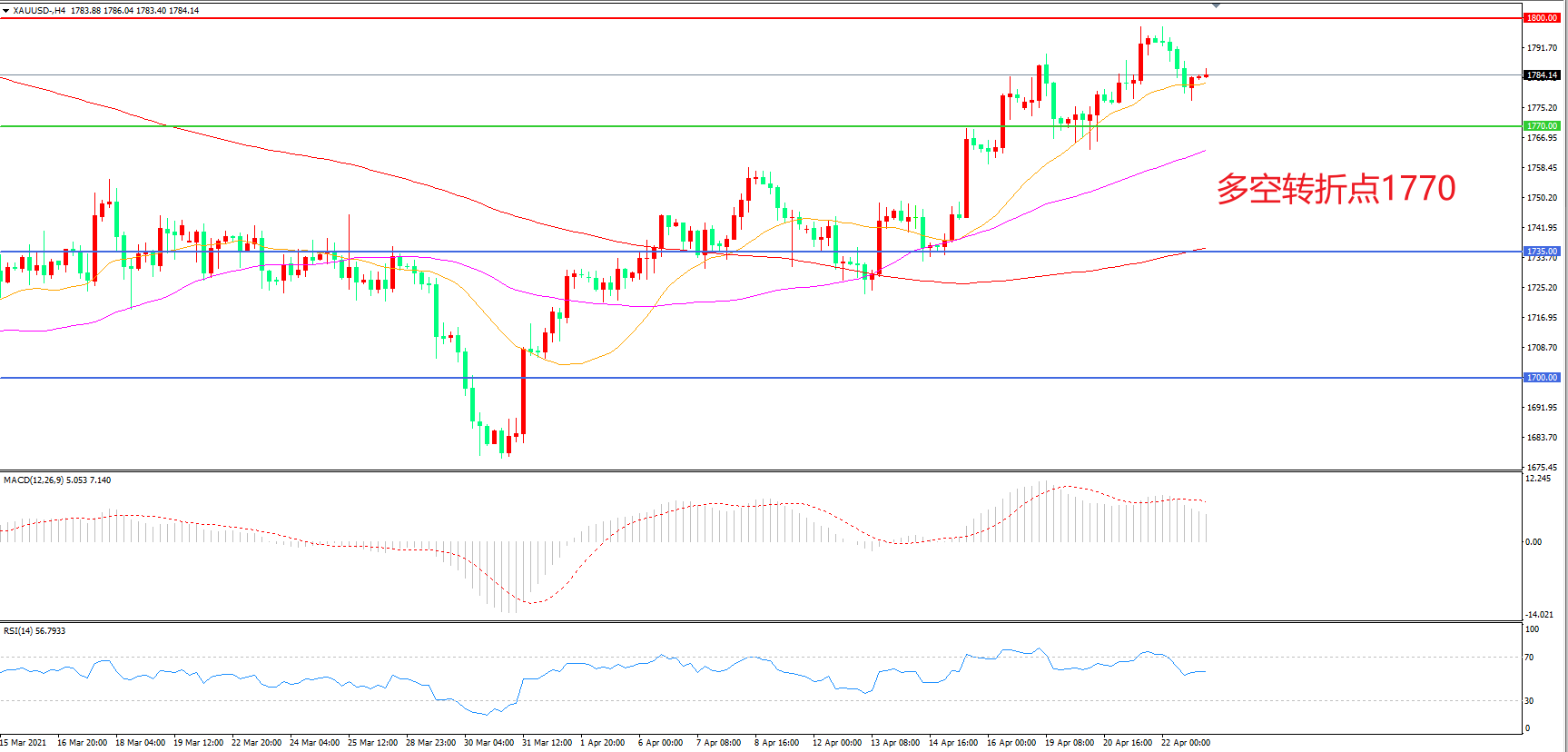 交易策略:在1770.00之上看涨,目标1800.00 1840.00