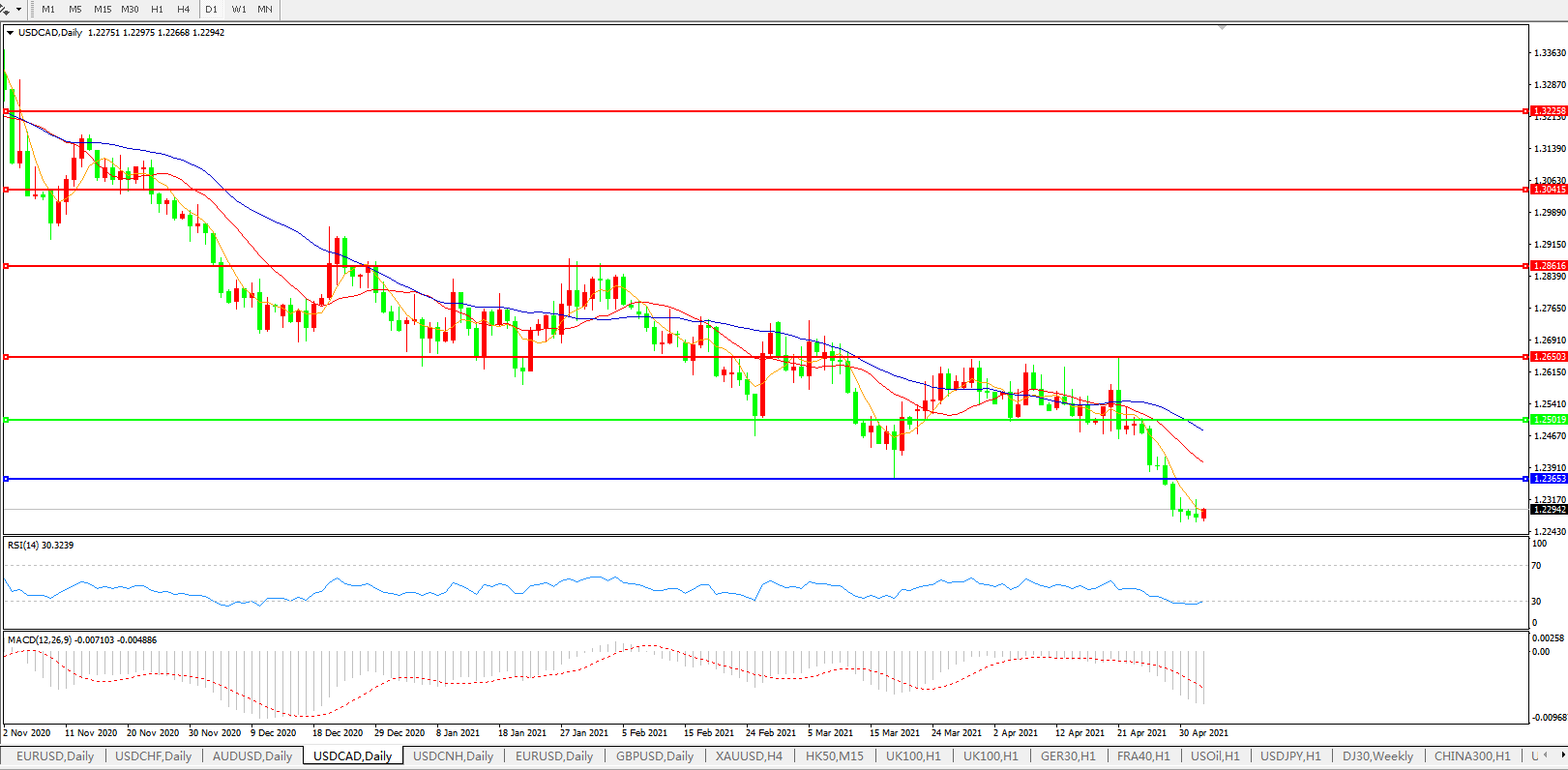 美元兑加元USDCAD    日线图: