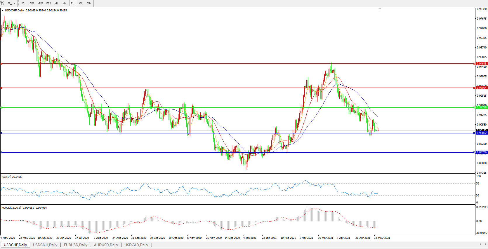 美元兑瑞郎USDCHF    日线图:
