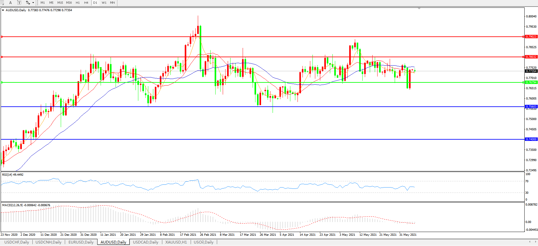交易策略:0.7680上方看涨,目标0.7800、0.7900