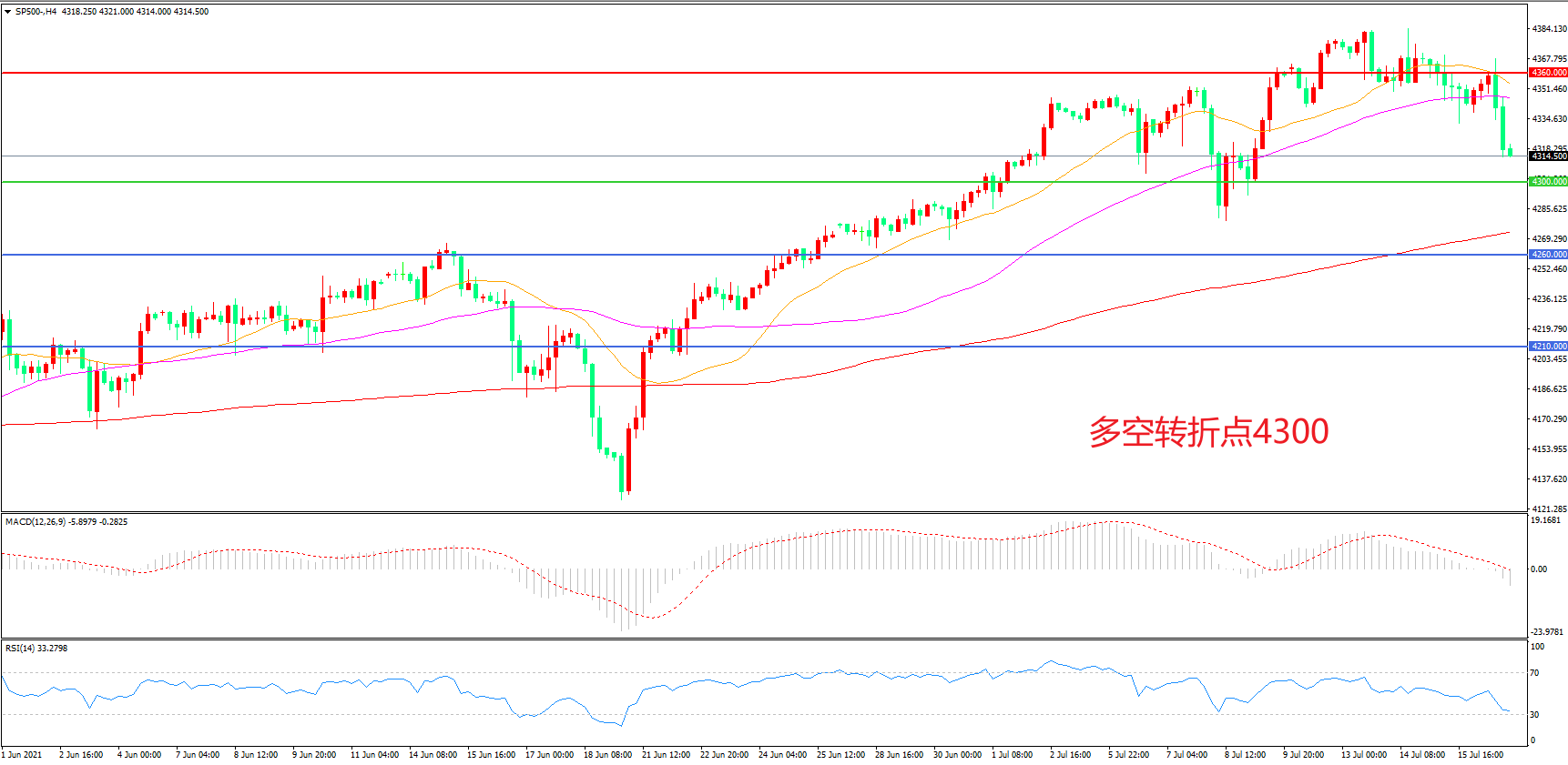 多空转折点:4300.00