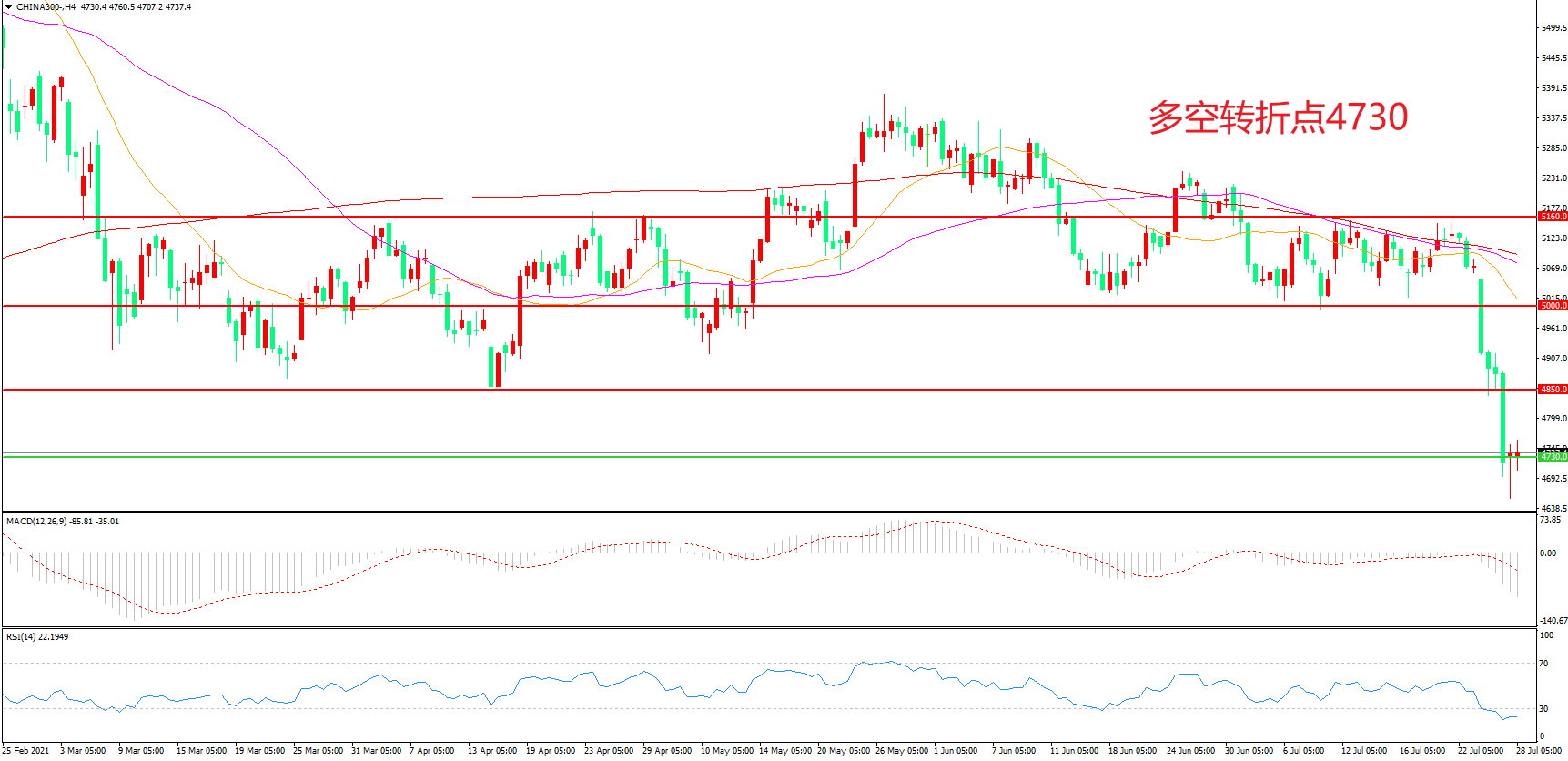 多空转折点:4730.00